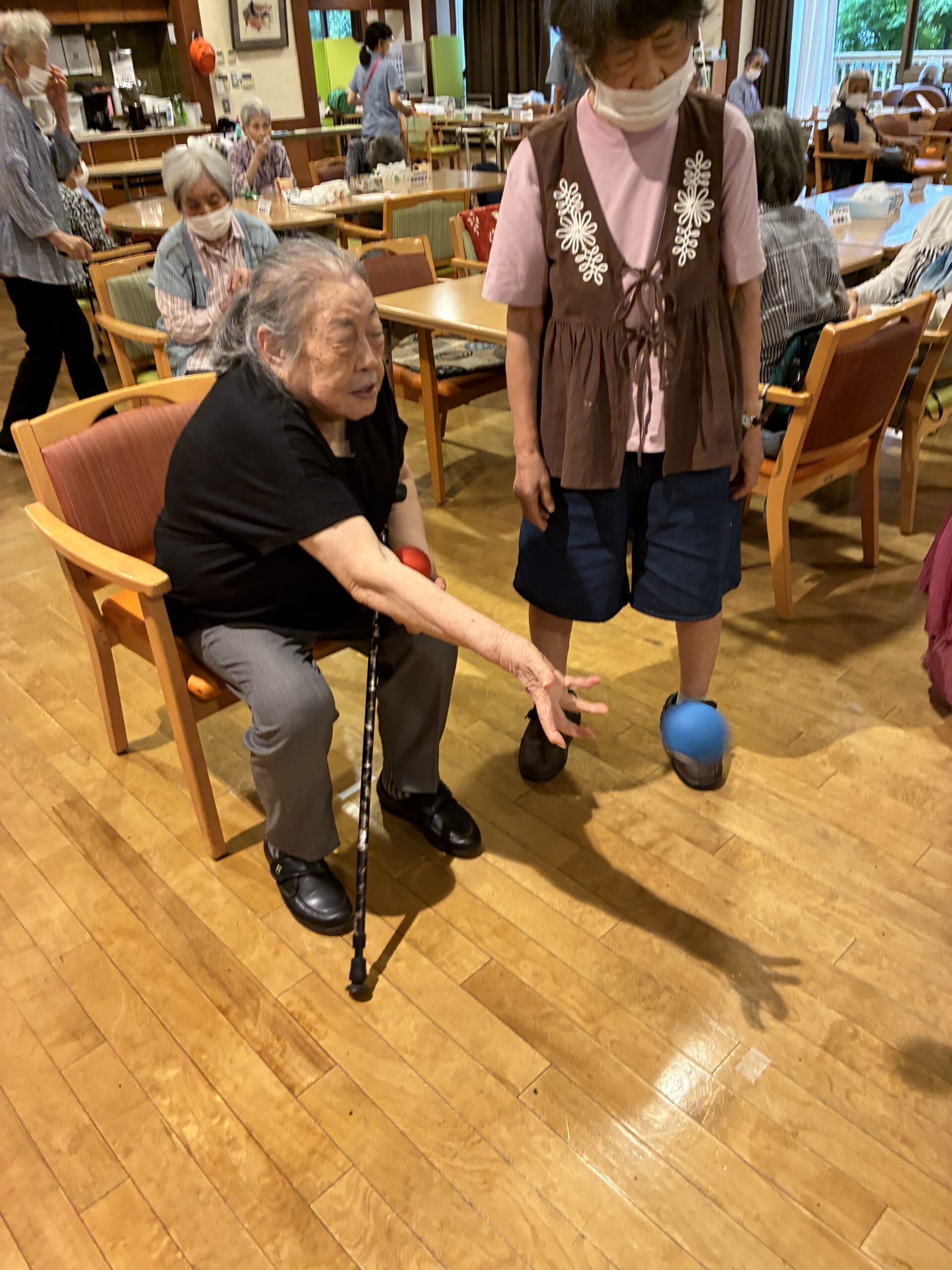 機能訓練を通じて、初対面の利用者様同士でも自然に会話や交流が生まれます。楽しみながら積極的に体を動かすことで、身体機能の維持・向上だけでなく、認知症予防や心の活性化にもつながります。