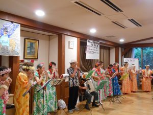 手作りの小道具を使った「サザエさん」の歌、フラダンスのステージと盛り沢山の内容で、あっという間の時間でした。
