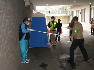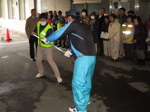 今回は、志村消防署成増出張所、板橋区危機管理室 地域防災課、高島平警察署 生活安全課 の職員の皆様にもご参加いただき、ご指導をいただきました。多比良医院院長先生に「板橋区の医療救護体制について~トリアージの実際~」について講義をお願いし、消火訓練、備蓄食糧の炊き出し訓練のほか、「さすまたを活用した防犯講習」も実施することが出来ました。当日は54年ぶりの11月の降雪となり寒さも厳しい中、多くの方々にご参加、ご協力いただき、貴重な訓練を開催することが出来ました。関係者の皆様にあらためて感謝を申し上げます。