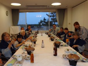 夕飯で新鮮な魚料理に舌鼓をうち、普段とは違った時間を過ごすうちに、初めは参加を躊躇されていた方も皆様と一緒になって旅を満喫されていました。