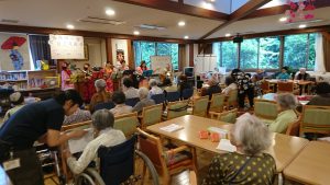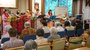 歌を楽しまれてました。ハワイアンの衣装に「素敵だわ~」と歓喜の声も聞かれ