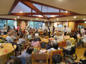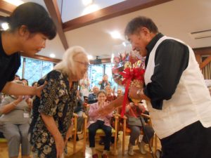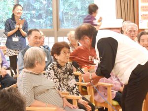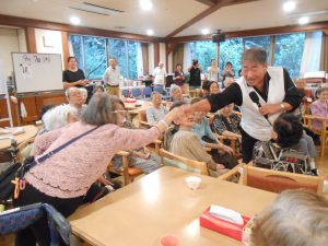 9/7(木)、TBSラジオ『毒蝮三太夫のミュージックプレゼント』の生放送が、ケアタウン成増デイサービスセンターで行われました。カランコロンと下駄の音を鳴り響かせ登場!「家の人に親切にされている?」「本当に大事にされているか?!」と、のっけから毒舌ぶりを発揮。デイフロアは、大爆笑の渦に巻き込まれました。放送終了後も毒蝮さんのトークは絶好調!笑いが止まりません!!そんな中「48年もやっているから、高齢者の気持ちがよく分かるんだよ」という言葉に、毒舌の中に優しさが詰まっている理由が少し分かったような気がしました。毒蝮さんの話が進むにつれてご利用者様がどんどん元気になっていく様子に、職員も元気を分けてもらった、そんな放送になりました!!!