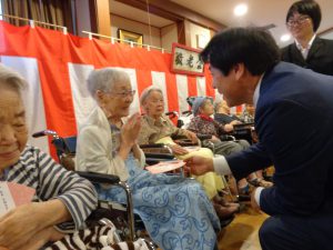 ※長寿(満101歳以上):2名 /百寿(満100歳) 2名 /白寿(満99歳)1名 /長寿(満95歳)4名 /卒寿(満90歳):5名 /米寿(満88歳):3名 /傘寿(満80歳):2名