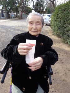 ケアタウンに来て初めての初詣の方もいらして、皆様思い思いにそれぞれのお願い事をお祈りしていらっしゃいました。おみくじを皆様引かれ、大吉、吉 …とそれぞれご自身の運勢をご覧になり、一喜一憂されていました。