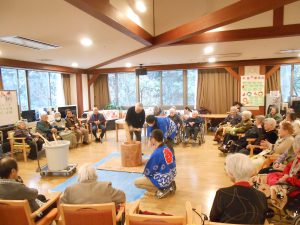 「よいしょ。よいしょ。」のかけ声と利用者の拍手とともに、もちをつく手に力が入ります。