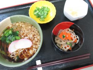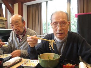 本日のメニューは、菜の花そば。おそばがお好きな方が多かったためか、皆さま黙々と召し上がっていました。