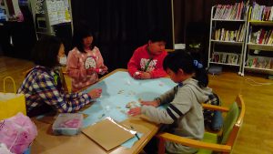 施設に飾る桜の花の創作絵作りも手伝ってもらいました。