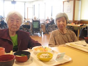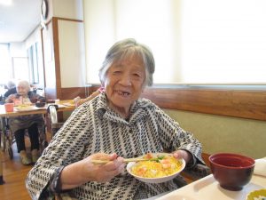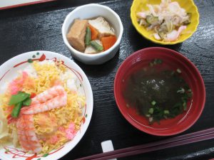 本日の昼食は、月に1度の『お寿司の日』。毎月いろいろなお寿司を提供しており、本日は“ちらし寿司”でした。