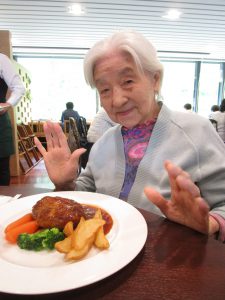 昼食は上野精養軒レストランミューズに行きました。上野の森が見える席でビフテキやハンバーグなどの洋食、クリームあんみつなどのスイーツも食べました。