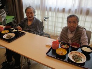 本日の合同ランチは、特養5名、デイサービス3名の方で行いました。