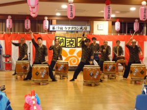 今年も、毎年大好評の成増天神太鼓様による演奏、盆踊りやフラダンスなどを披露していただき、利用者の皆さんも踊りの輪に加わったり、その場で手足を動かしたりして楽しんでいらっしゃいました。その他にも焼きそばやクレープなどを召し上がり、「楽しいねぇ」「美味しいねぇ」などあちこちでたくさんの笑顔が溢れていました。