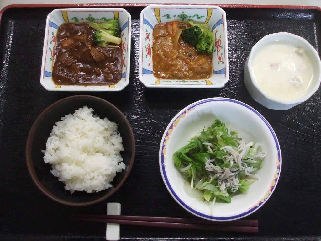 本日2日目は、“ブラウンシチュー”と“さばのトマトカレー”のどちらかお好きな方を選んでいただきました。