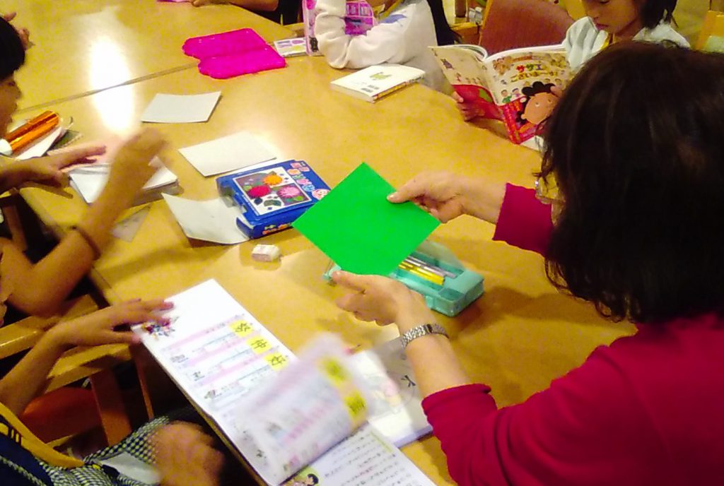 食事の用意ができるまでカードゲームや折り紙、絵本と思い思いの場所で