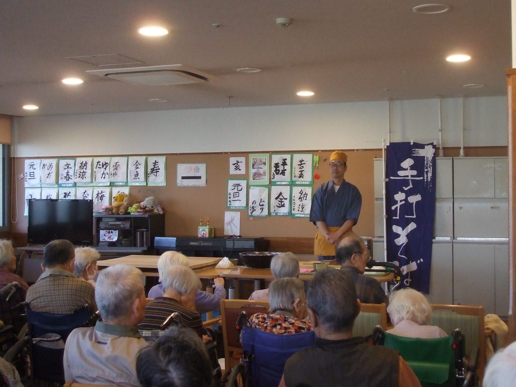 さぁ、これから特養とデイサービスでそれぞれそば打ちの実演のはじまりです。