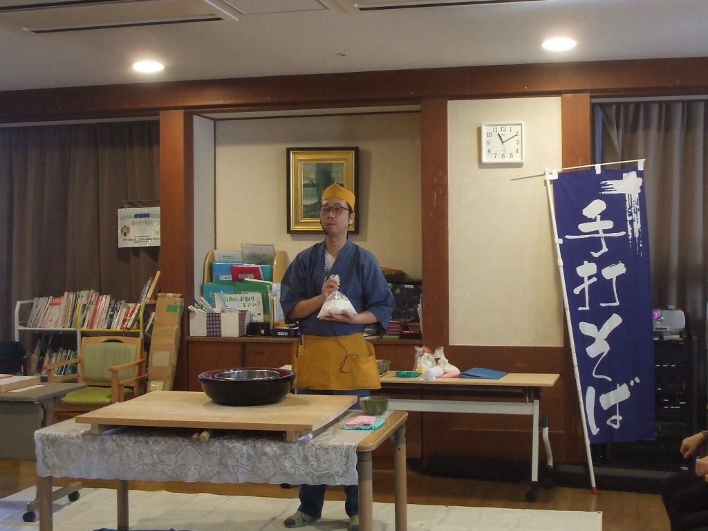 普段は厨房で食事を作っている職員さんが、今日はそば職人に大変身!
