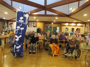 本日、そば打ちのイベントを開催しました。イフスコさん指導のもと、そば打ち体験をしました。そば粉をこね、のしで棒でのばし作業をご利用者様は真剣な表情で見ていました。数名のご利用者様にも体験して頂き、中には「昔、うどんは作ったのよ」とお話されるだけ、とても手慣れていました。 その後はこま板を使い、めん切り。本日は近隣の赤塚二中の生徒さんも職場体験の合間にそば打ちに挑戦されご利用者様からの声援に頑張って行ってました。昼食は天ぷらを添えてのざるそば。皆様からは「今日は格別に美味しかった」との声が聞かれました。