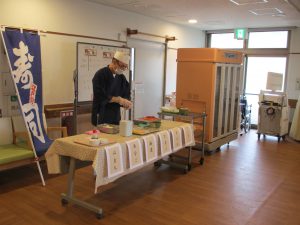 今日は、利用者様が楽しみに待っていた、握りずしイベントでした。