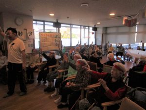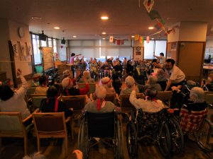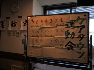 特養で毎年恒例の秋の大運動会を開催しました。2階3階で紅組白組に分かれ、今年の競技はボールリレーと玉入れを行いました。白熱した競技の結果は引き分けで勝負は付かなかったものの、利用者様はもちろん職員も真剣勝負でヘトヘトになってしまいました。良い汗をかいた後はお菓子のつかみ取りを楽しまれ、おやつにそれぞれ召し上がりました。各階で一致団結し楽しいひと時を過ごすことが出来ました。