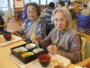 本日の昼食は、いつもと雰囲気を変えてお弁当箱に入れて提供いたしました。