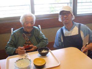 本日は、特養・ショートステイのフロアへ厨房職員が食事の時間に合わせてお話をうかがいに行きました。