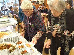 盛付けている様子をじっくり見ながら選ばれる方も多く、カウンターではにぎやかな様子も見られました。