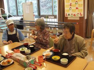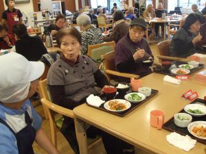 職員さんと寄り添いながらお食事を選ばれている方もいらっしゃいました。