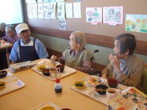 ご利用者様から、「彩りがキレイですね、いつも美味しくいただいています」と嬉しい声を聞くことができました。