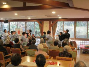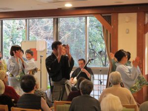 川椿会メンバーの尺八と笛を担当されている春日信雄さんが当デイサービスのドライバーで勤務されている事から、今回の演奏会が実現しました。