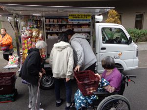 本日は移動販売初日で、特養とショートステイのご利用者様がお買い物されました。