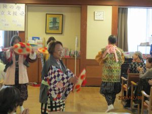 豆まきで鬼を退治した後は、花笠音頭で盛り上がりました。