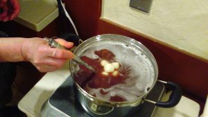 デザートもなるべく火を通したものと思い白玉ぜんざいにしました。