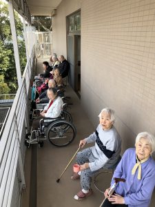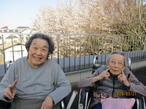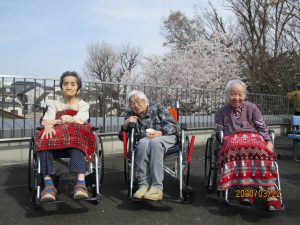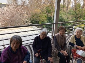 ケアタウンでもテラスに出て、お花見を楽しみました。