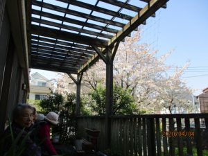 今日は暖かいので、好きな飲み物を片手にベランダに出てお花見しました。