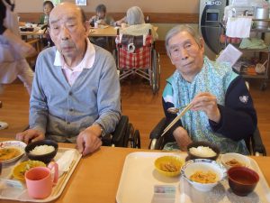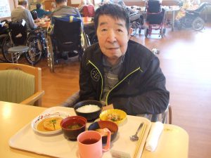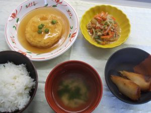 本日の昼食は、春巻きの日にちなんで『春巻き』を、また『かに玉』『中華サラダ』と合わせて中華