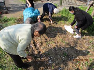 デイサービスではコロナウイルスの不景気に負けず、農園の草むしりで適度に外気浴を行いました。
