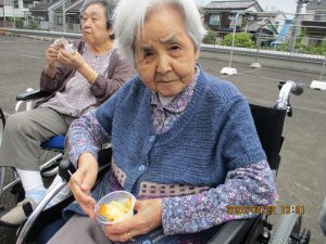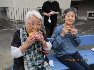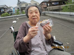 コロナウイルスの影響で外出することが難しいですが、少しでもご利用者様の気分転換になるように、今後も暖かい日はテラスを活用していきたいと思います♪