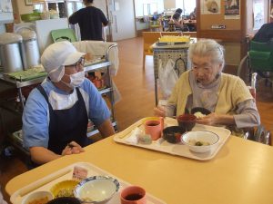本日は、特養・ショートステイのフロアへ厨房職員が食事の時間に合わせてお話をうかがいに行きま