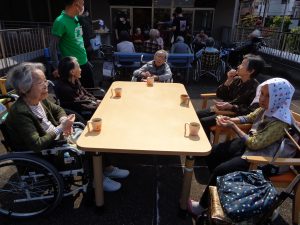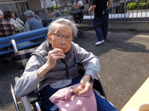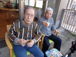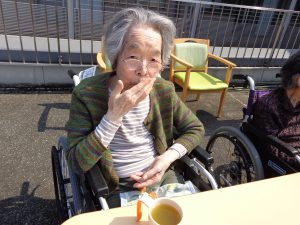 テラスでのお茶会を開催しました。たくさんのご利用者様に参加していただきました。