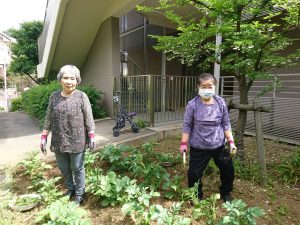 ジャガイモの養分を摂られない様に今日も利用者様と共に雑草抜きに来ました。