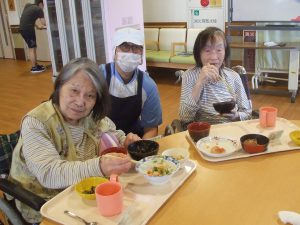 皆さまお好きな物を選ばれて箸もよく進んでおりました。今月もお食事中にカメラを向け