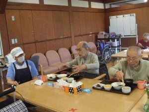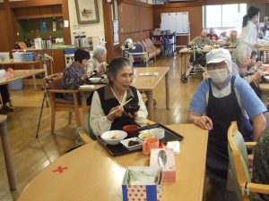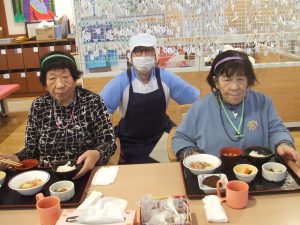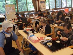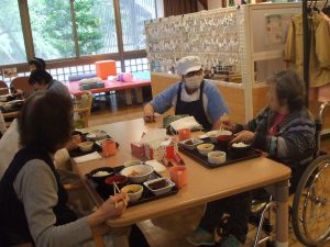 本日は、デイサービスのフロアへ厨房職員が食事の時間に合わせてお話をうかがいに行きま