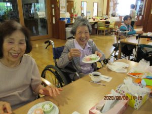 6/8 デイサービスでは『パーラーケアタウン』と称しまして喫茶タイムを過ごしました。