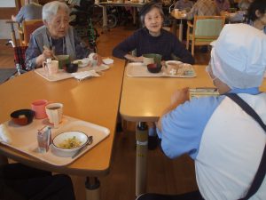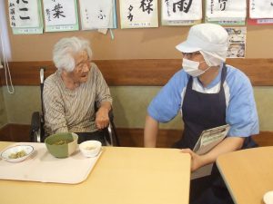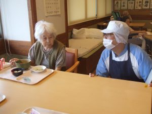 本日は、特養・ショートステイのフロアへ厨房職員が食事の時間に合わせてお話をうかがい