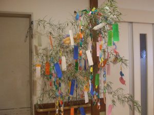 ケアタウンでは利用者様や職員が、短冊に願いを込めて笹の葉につるしました。
