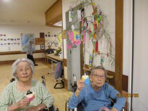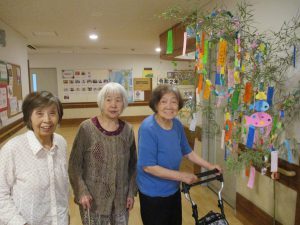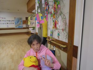 笹に飾り付けをして、皆さん願い事を書いていただきました。