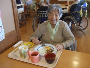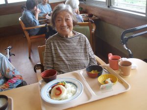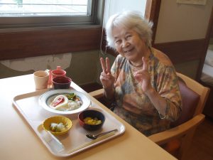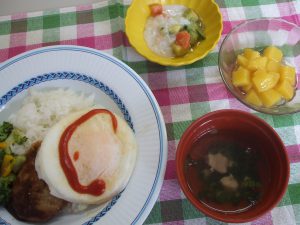 本日の昼食は月に1度のご当地メニュー。今月は、世界の料理として“ハワイ”をイメージした