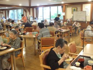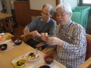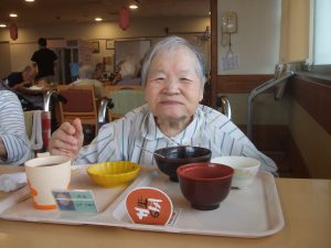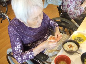 添えているカードを手に取り「字が小さくて見えないよぉ~」とおっしゃりながらも隣の方と