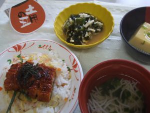 本日は、月に1度のお寿司の日と合わせて、『うなぎちらし寿司・吸物・玉子豆腐のえびあん
