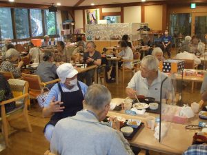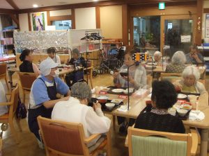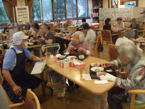 本日は、デイサービスのフロアへ厨房職員が食事の時間に合わせてお話をうかがいに行きま