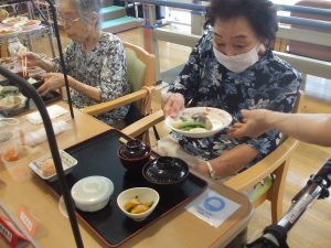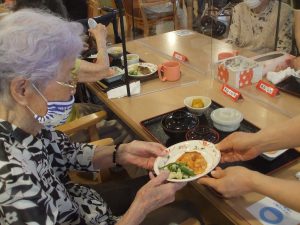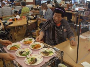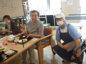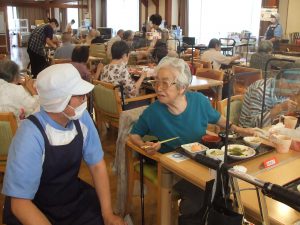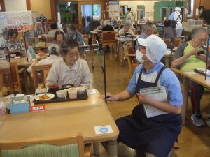 また、デイサービスのフロアへ厨房職員が食事の時間に合わせてお話をうかがいに行きま